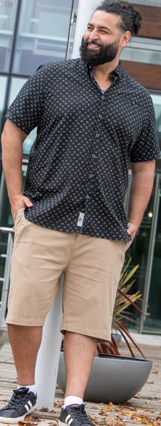 Guía de tallas - D555 Matlock Short Sleeve AOP Shirt With Hidden Button Down Black