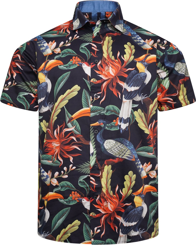 Guía de tallas - Kam Jeans 6066 Bird Print Short Sleeve Shirt Navy