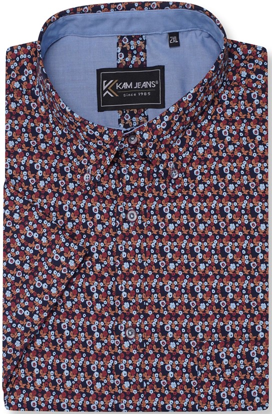 Guía de tallas - Kam Jeans 6326 Mini Floral Print Short Sleeve Shirt Navy