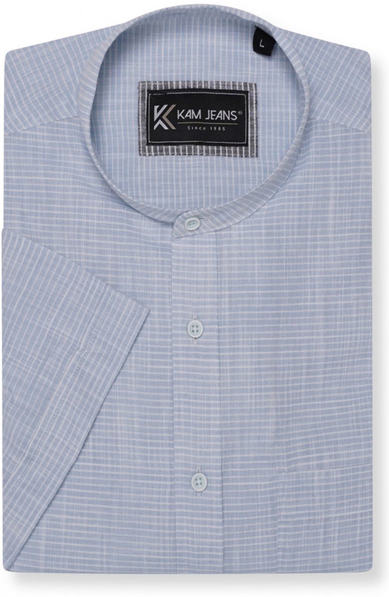 Guía de tallas - Kam Jeans 6334 Striped Grandad Short Sleeve Shirt Blue