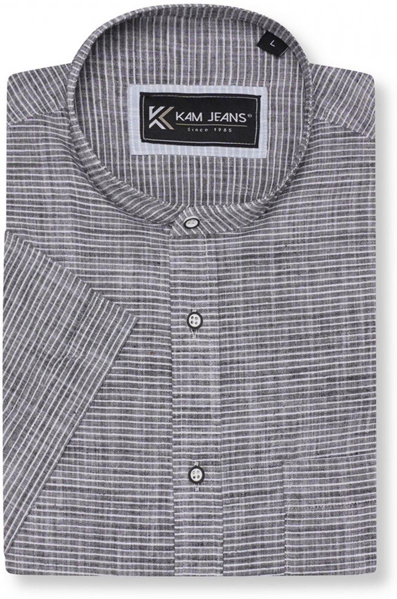 Guía de tallas - Kam Jeans 6334 Striped Grandad Short Sleeve Shirt Charcoal