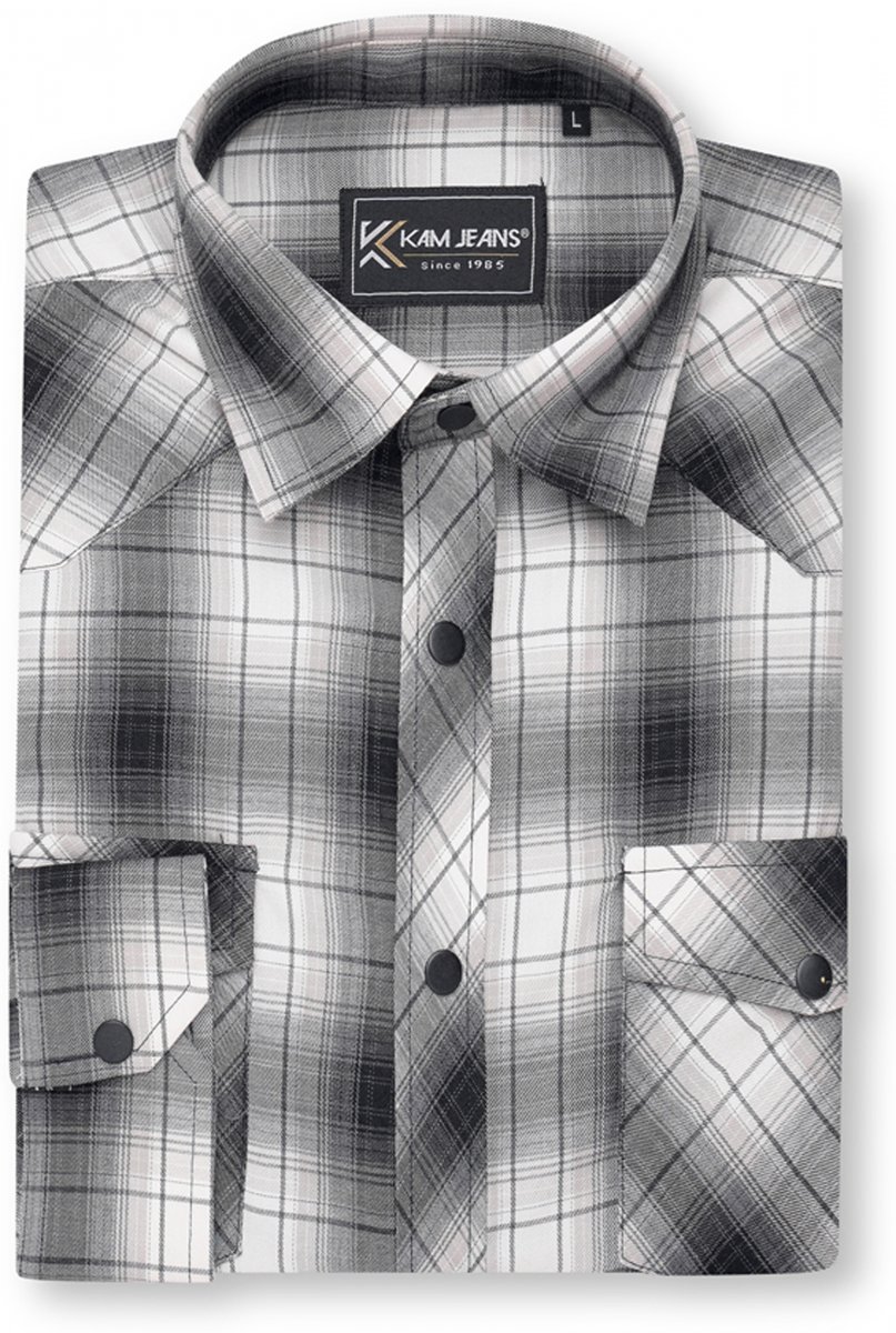 Guía de tallas - Kam Jeans 6352 Western Twin Pocket Long Sleeve Shirt Charcoal