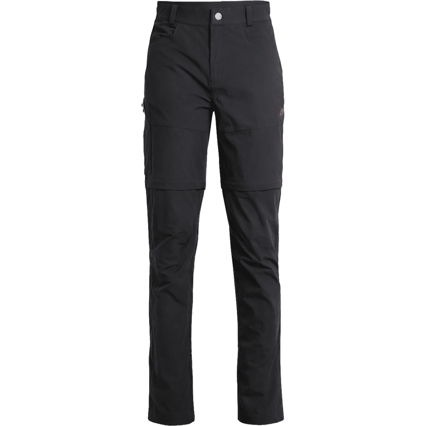 Pantalones de secado rápido confeccionados en un cómodo tejido elástico en 4 direcciones. La función zip-off permite convertirlos fácilmente en pantalones cortos. Incluyen bolsillos con cremallera y un tratamiento sin fluorocarbonos que ayuda a repeler el agua y la suciedad. Disponibles en negro y azul piedra.