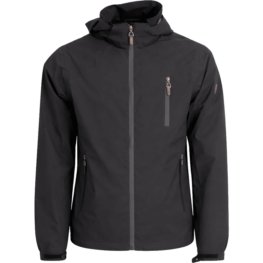 Una chaqueta suave, cortaviento e impermeable, con costuras selladas y tejido ligeramente elástico para una mayor comodidad. Incluye bolsillos con cremallera y un tratamiento sin fluorocarbonos que ayuda a repeler el agua y la suciedad. Disponible en negro, gris oscuro y azul piedra.