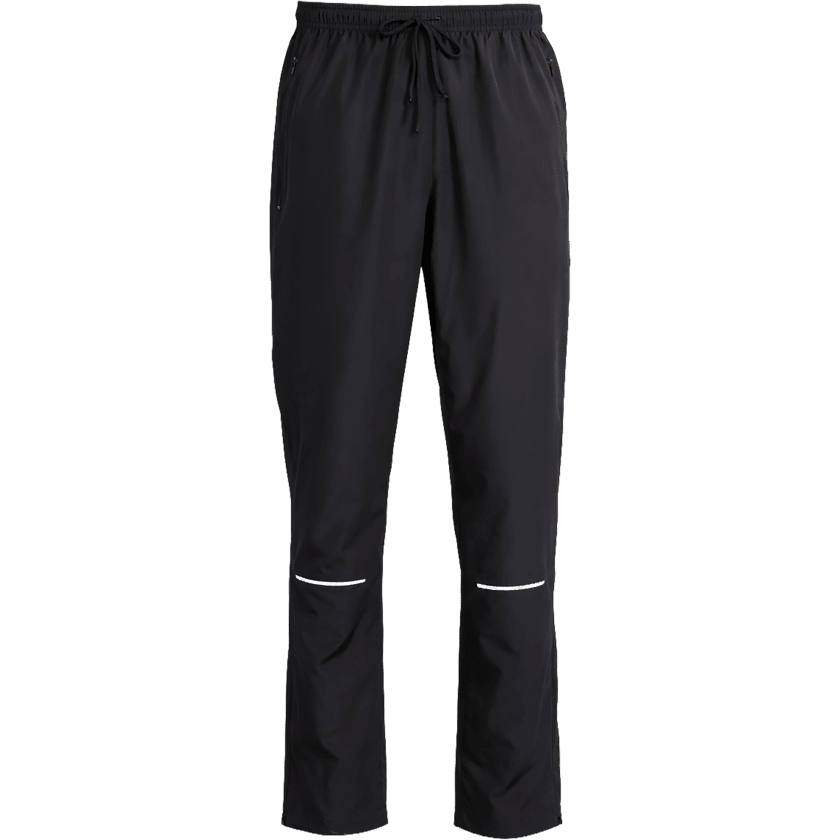Pantalones ligeros y cortaviento de tejido transpirable, diseñados para moverse con comodidad en el día a día. Incluyen bolsillos con cremallera, detalles reflectantes y un tratamiento sin fluorocarbonos que ayuda a repeler el agua y la suciedad. Disponibles en negro.