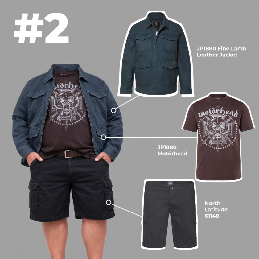 Una muy buena opción para los días de primavera más frescos. La chaqueta aporta abrigo, la camiseta ofrece comodidad y los cargo shorts añaden bolsillos prácticos.