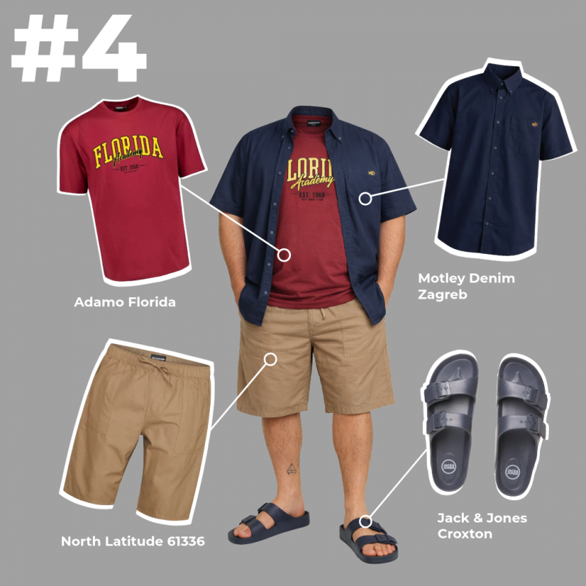 Un outfit sencillo para los días más cálidos. La camisa abierta resulta estilosa y fresca, los shorts mantienen un aire relajado y las sandalias son perfectas para los días soleados.