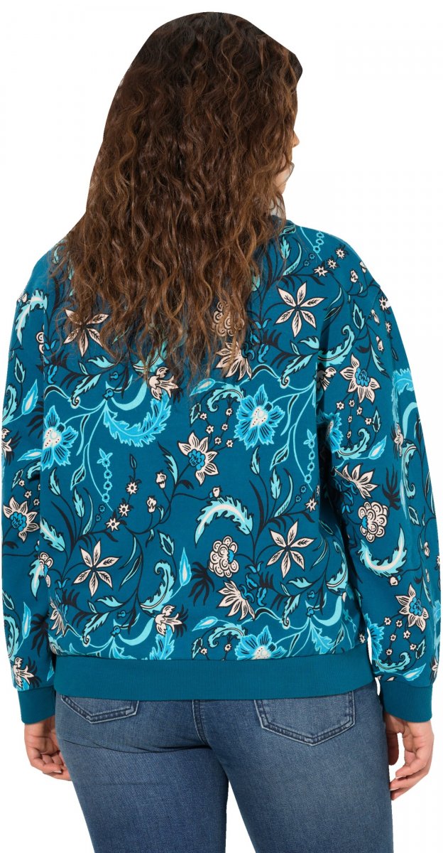 Ulla Popken Beaded Floral Long Sleeve Sweatshirt Dark Teal