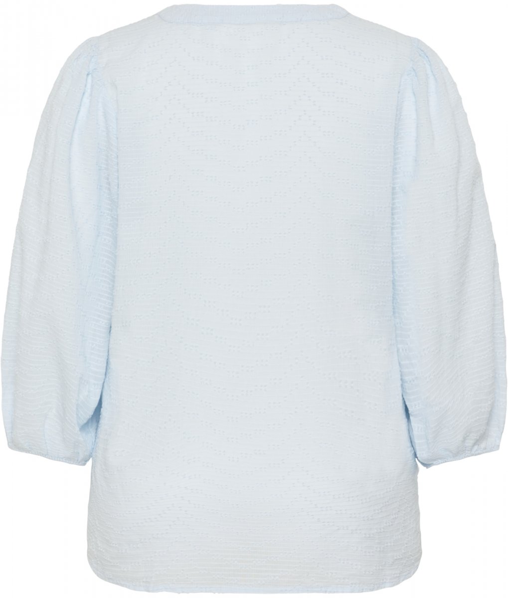 BlusaDisponible en tallas 42–54De la marca Kaffe CurveHecho de 100% algodónCorte regularColor AzulPulse aquí para mostrar la guía de tallas