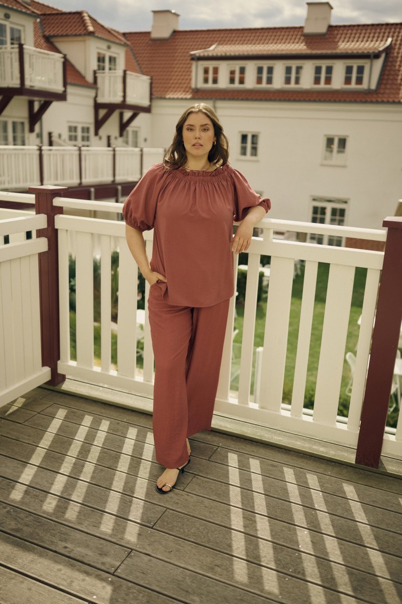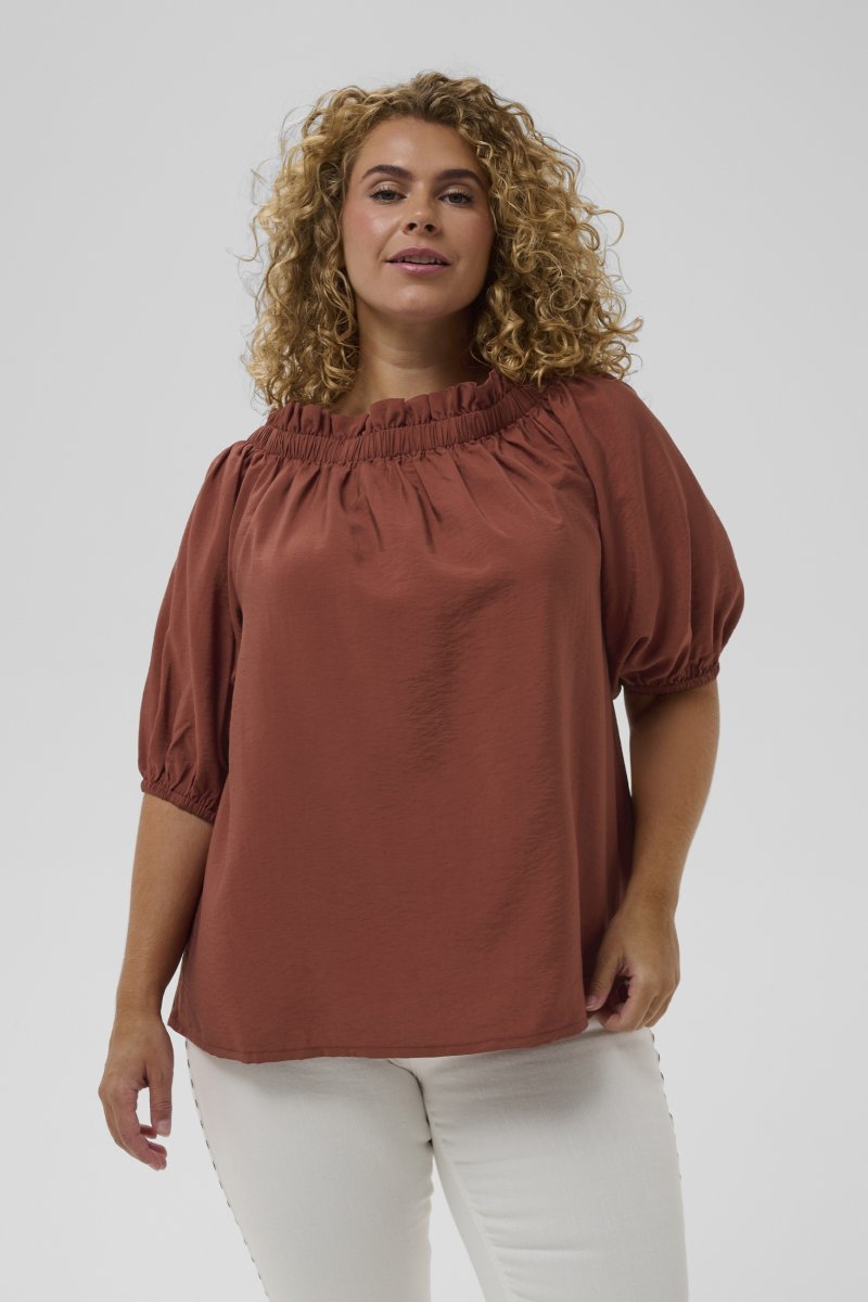 BlusaDisponible en tallas 42–54De la marca Kaffe CurveHecho de 87 % viscosa (LENZING™ ECOVERO™) y 13 % nailonCorte holgadoColor MarrónPulse aquí para mostrar la guía de tallas