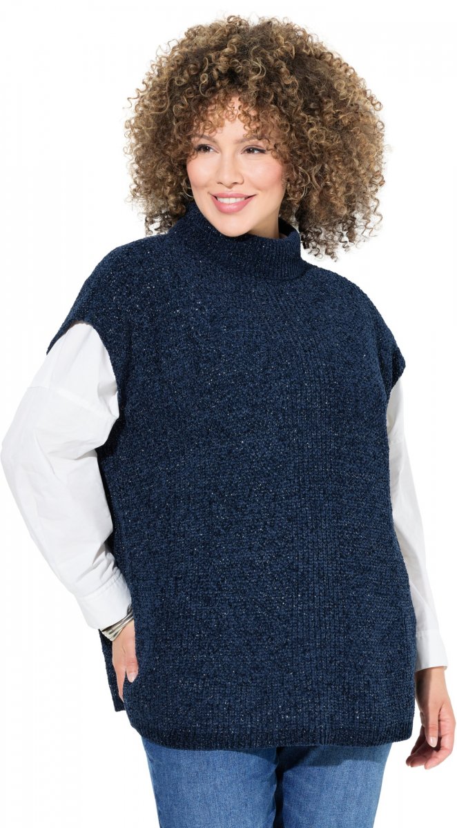 Ulla Popken Cap Sleeve Turtleneck Sweater Blue