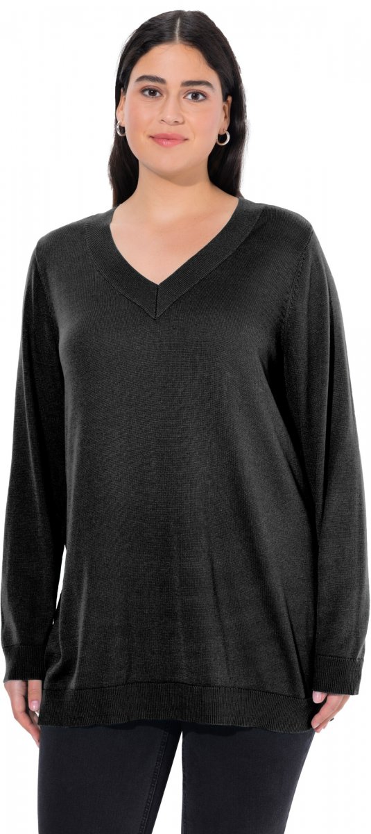 Ulla Popken Casual V-Neck Long Sleeve Sweater Black