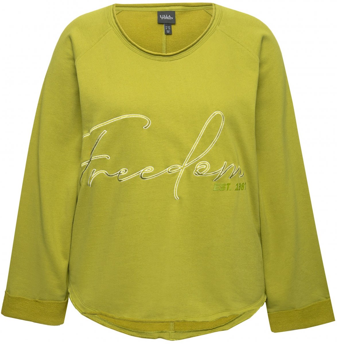 Ulla Popken Embroidered Freedom Rolled Edge Sweatshirt Avocado Green
