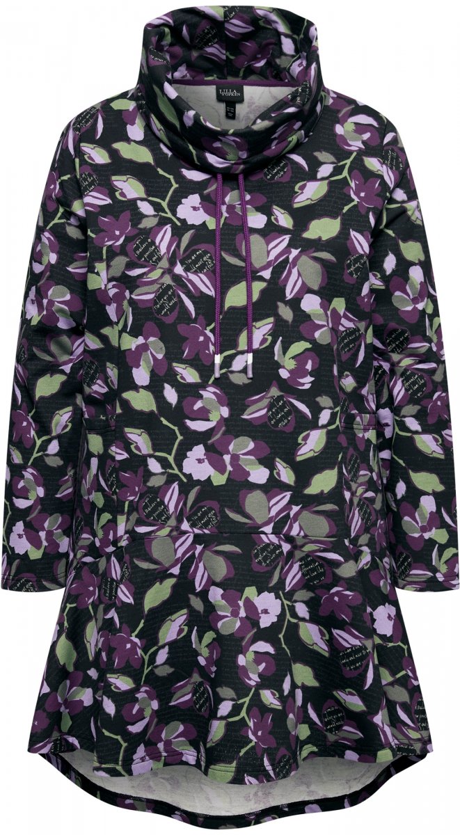 Guía de tallas - Ulla Popken Floral Stand-Up Collar Flounce Panel Sweatshirt Black