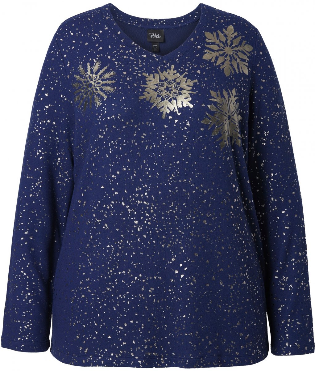 Guía de tallas - Ulla Popken Metallic Print Extra Soft Christmas Sweatshirt Ink Blue