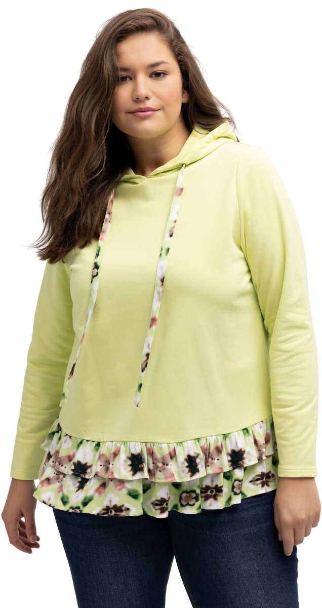 Guía de tallas - Ulla Popken Ruffle Hem A-line Fit Hooded Sweatshirt Lime Green