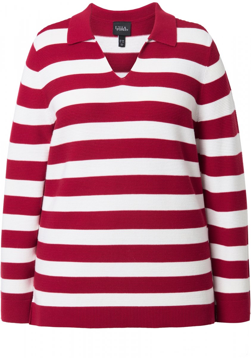 Guía de tallas - Ulla Popken Striped Polo Collar Long Sleeve Sweater Ruby Red