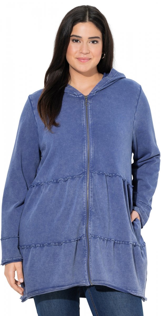 Guía de tallas - Ulla Popken Tiered Flounce Panel Zip Up Hoodie Atlantic Blue