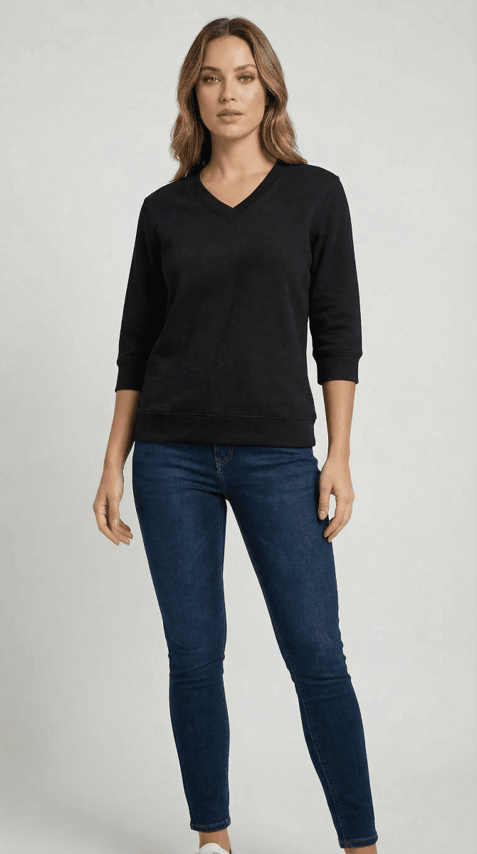 Sudadera para mujerDisponible en tallas S-XXLDe la marca Nora MikkenHecho de 60% algodón y 40% poliésterCorte regularColor negroPulse aquí para mostrar la guía de tallas
