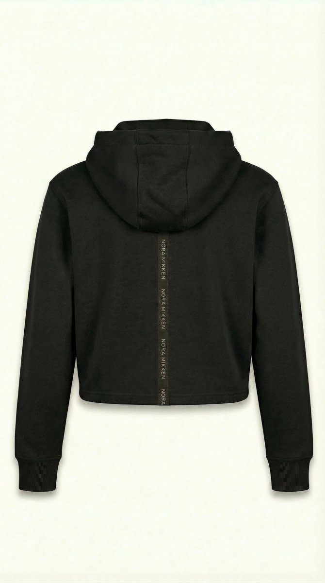 Sudadera corta con capuchaDisponible en tallas S-XXLDe la marca Nora MikkenHecho de 60% algodón y 40% poliésterCorte holgadoColor negroPulse aquí para mostrar la guía de tallas