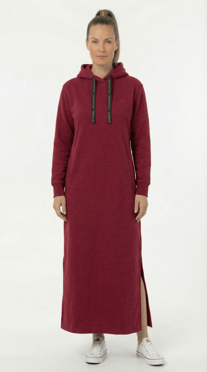 Sudadera larga para mujerDisponible en tallas S-XXLDe la marca Nora MikkenHecho de 60% algodón y 40% poliésterMaxiColor burgundyLa sudadera tiene 2 bolsillos en la parte delanteraPulse aquí para mostrar la guía de tallas
