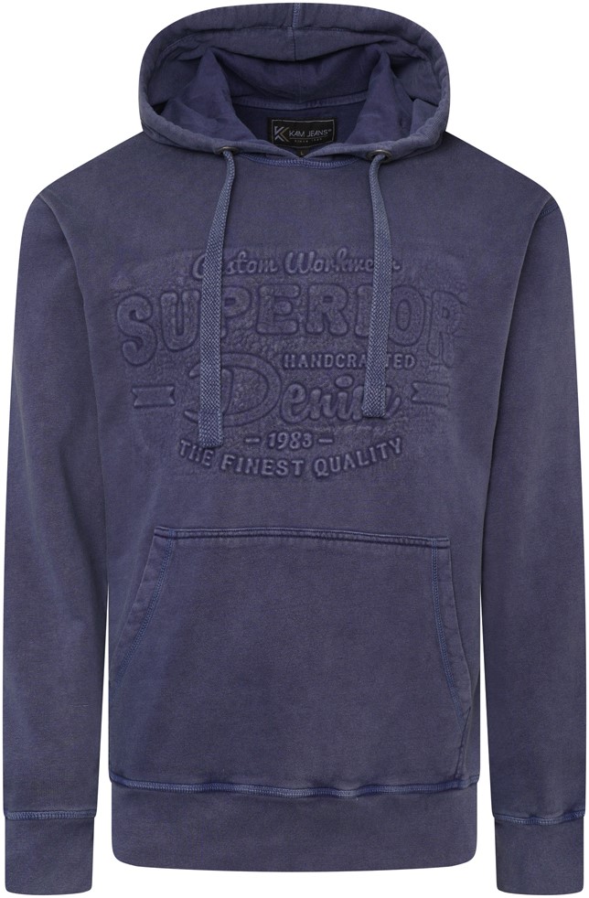 Guía de tallas - Kam Jeans 7066 Over Head Washed Embossed Hoody Blue