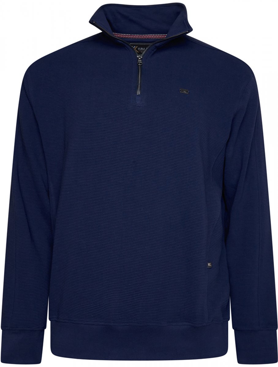 Guía de tallas - Kam Jeans 7090 1/4 Zip Jacquard Knit Self Stripe Sweatshirt Navy